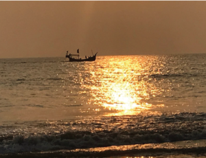 সাদা বালির উপর দাঁড়িয়ে আমরা সূর্যাস্ত দেখলাম। আমার স্ত্রী আর আমি সেই মুহূর্ত উপভোগ করছিলাম, চারপাশের কোলাহল যেন মিলিয়ে যাচ্ছিল। কমলা রঙের সূর্য যখন ঢেউয়ের মধ্যে ডুবে যাচ্ছিল, আর একটি মাছ ধরার নৌকা পাশ দিয়ে যাচ্ছিলতখন প্রকৃতির সৌন্দর্য আমরা নিখুঁত শান্তিতে অনুভব করছিলাম।